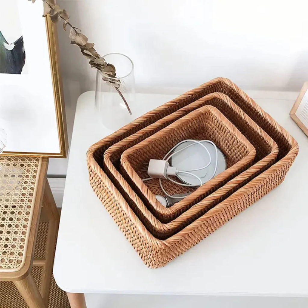 Transforme a organização da sua casa com o charme do nosso Cesto Organizador de Rattan Bali. Feito à mão, este cesto une a beleza natural do rattan à funcionalidade que você precisa no dia a dia.