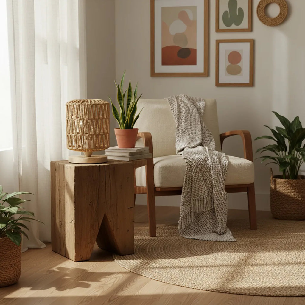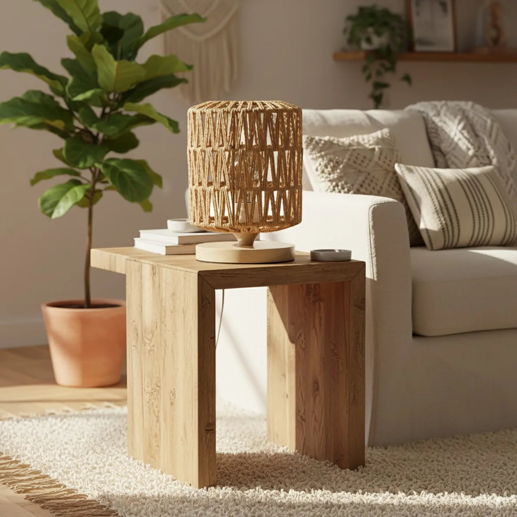 Inspirada na simplicidade da natureza, a Luminária de Mesa Bambu Raízes traz o charme rústico das fibras naturais entrelaçadas à mão. Com sua cúpula trançada em sisal e base em madeira, ela evoca a autenticidade dos lares que valorizam o feito à mão.