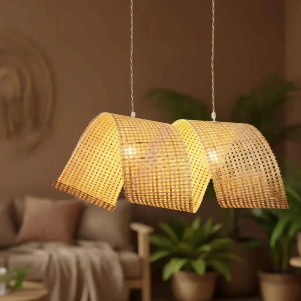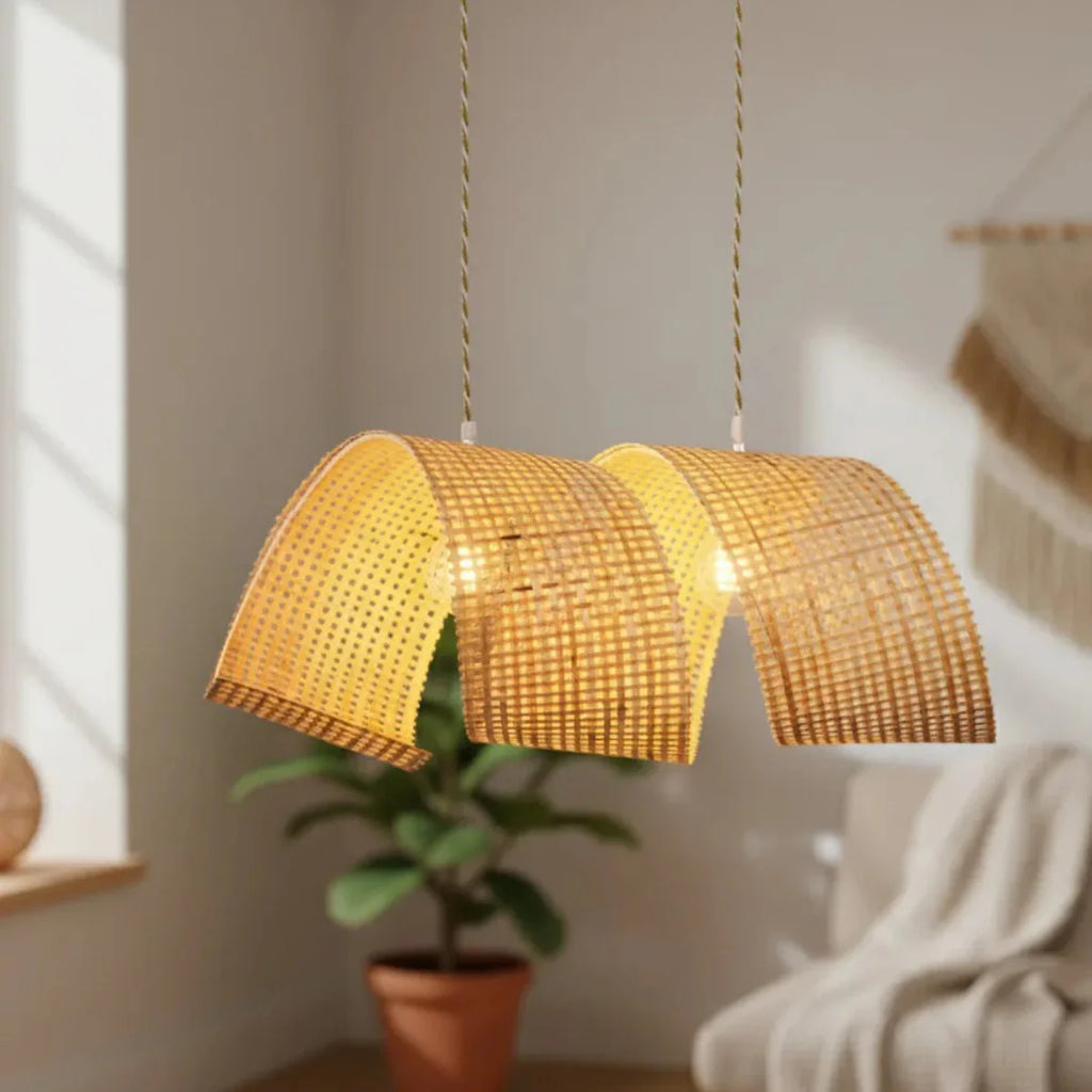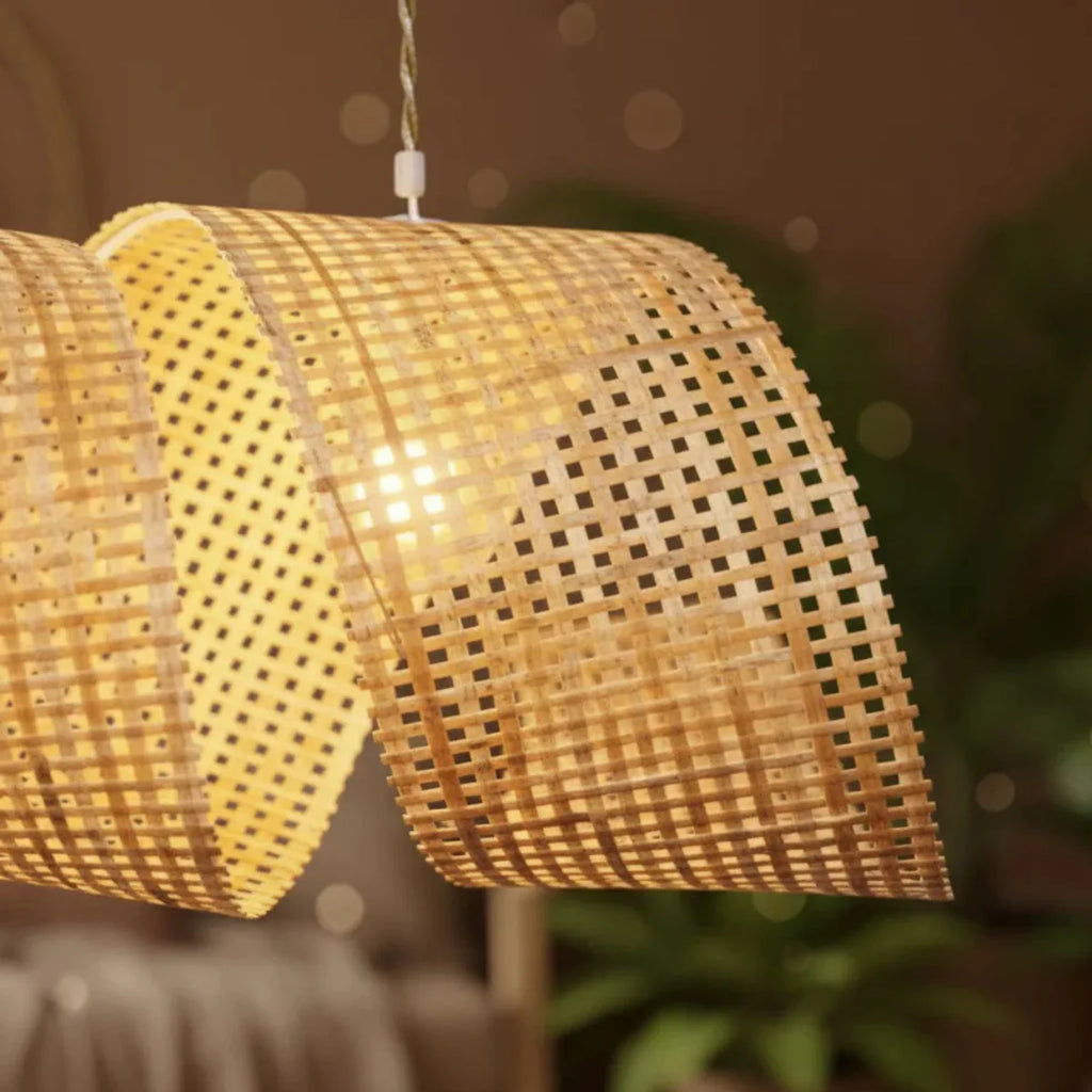 Inspirada nas formas suaves e contínuas das dunas do deserto, a luminária Duna é uma peça de design que transforma a luz em escultura. Seu trançado artesanal em palha natural molda curvas elegantes que criam uma dança de sombras e texturas no ambiente.