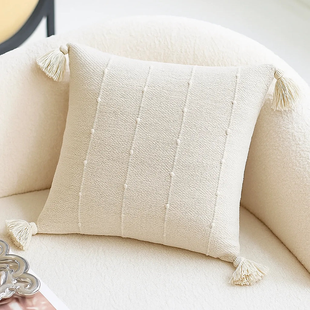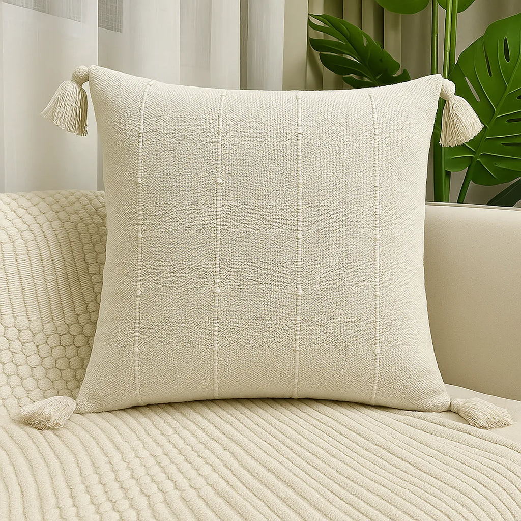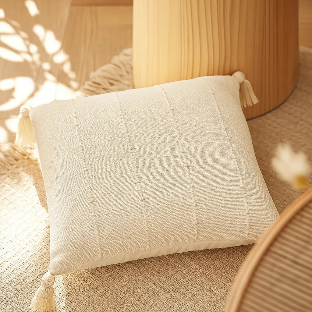 Minimalista e sofisticada, a Capa de Almofada Aura traz uma elegância sutil com suas delicadas listras em relevo e franjas em suas laterais. Feita em tecido texturizado de tom neutro, ela é perfeita para compor ambientes neutros, escandinavos ou boho chic, adicionando aconchego e estilo sem sobrecarregar a decoração.