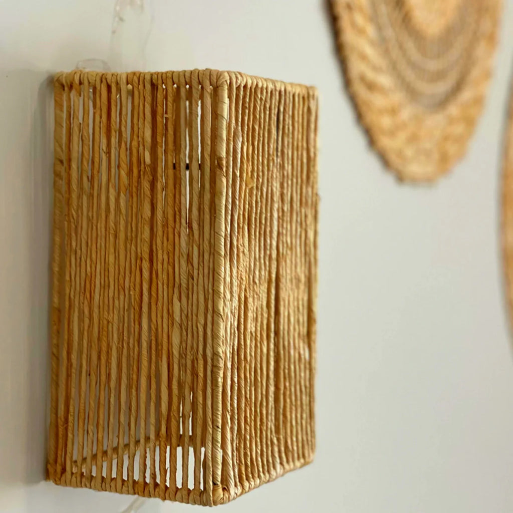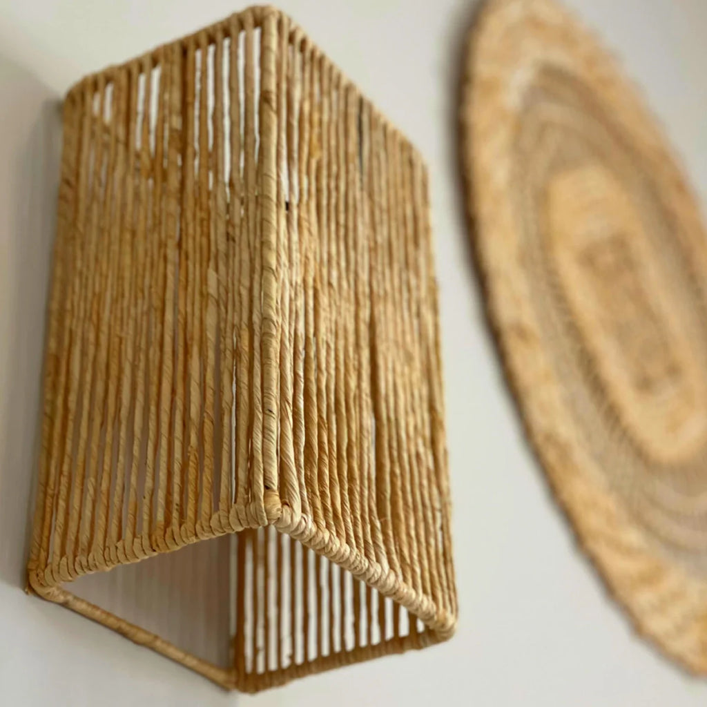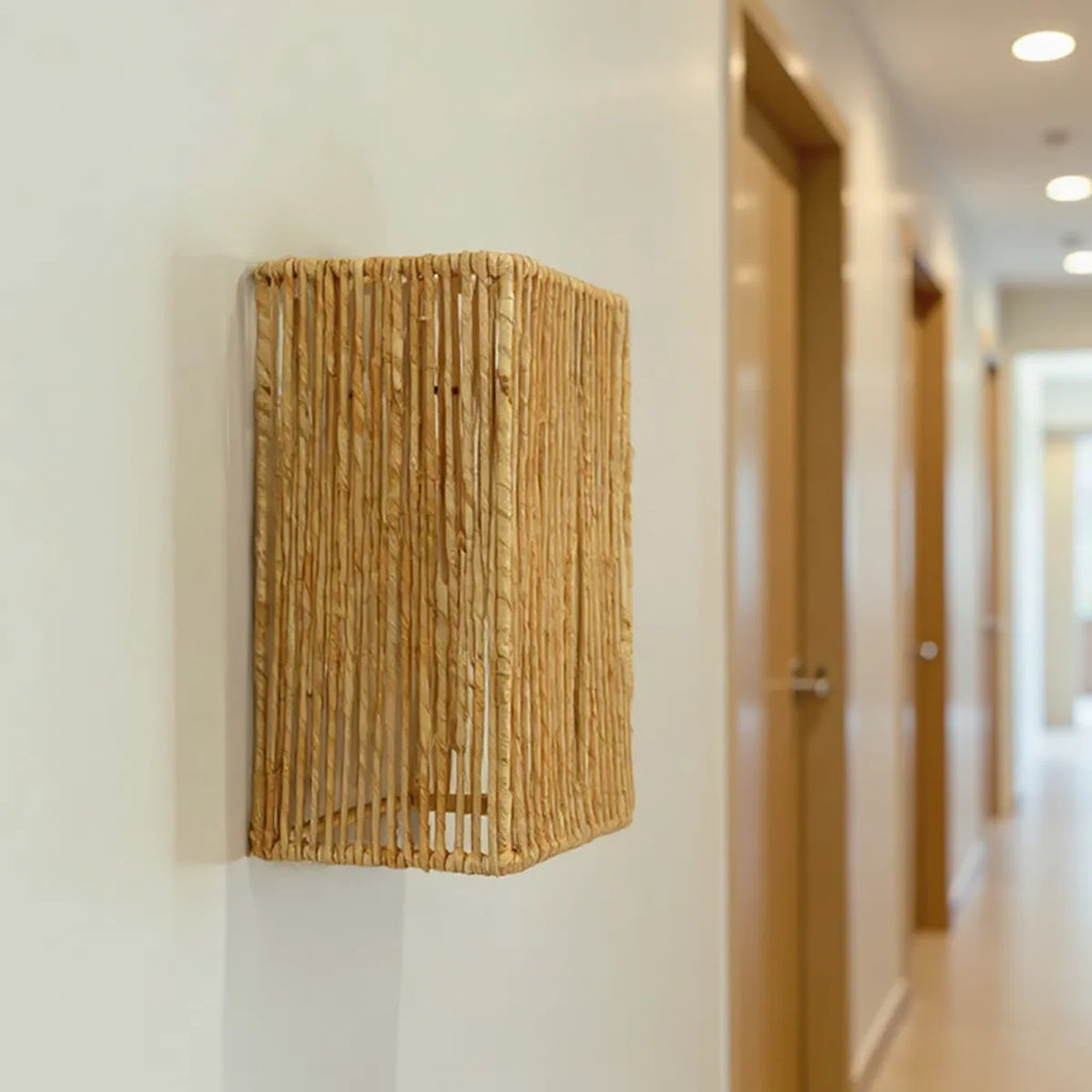 Com um design geométrico e acabamento em fibra natural, a Luminária Arandela de Palha Tanah combina leveza e estrutura de forma elegante e contemporânea. Suas linhas verticais filtram a luz criando um jogo sutil de sombras e texturas na parede, ideal para quem busca uma iluminação decorativa com alma artesanal. Perfeita para compor hall de entrada, corredores, quartos ou espaços de relaxamento com um toque natural e sofisticado.