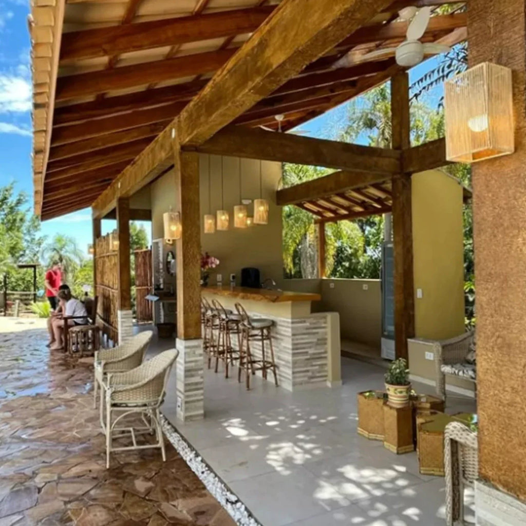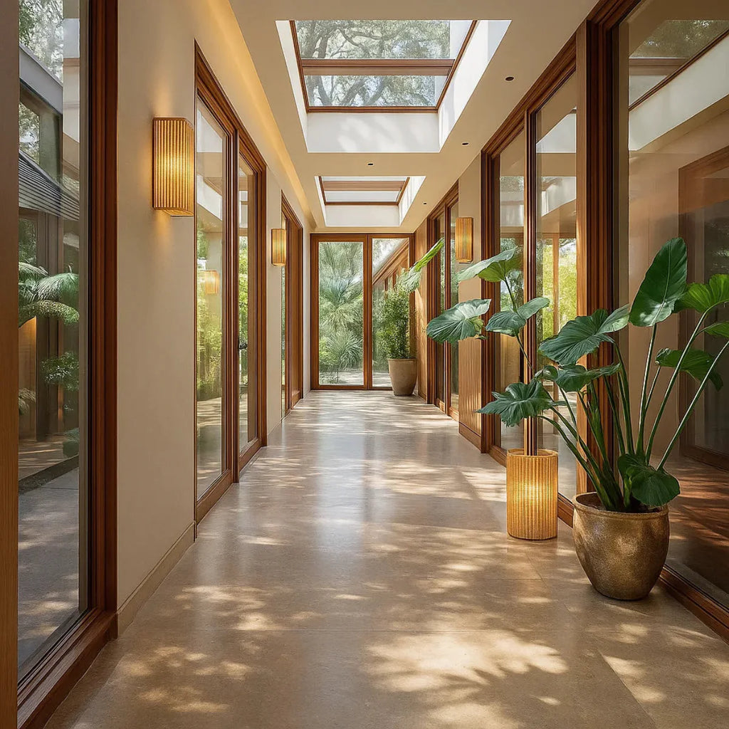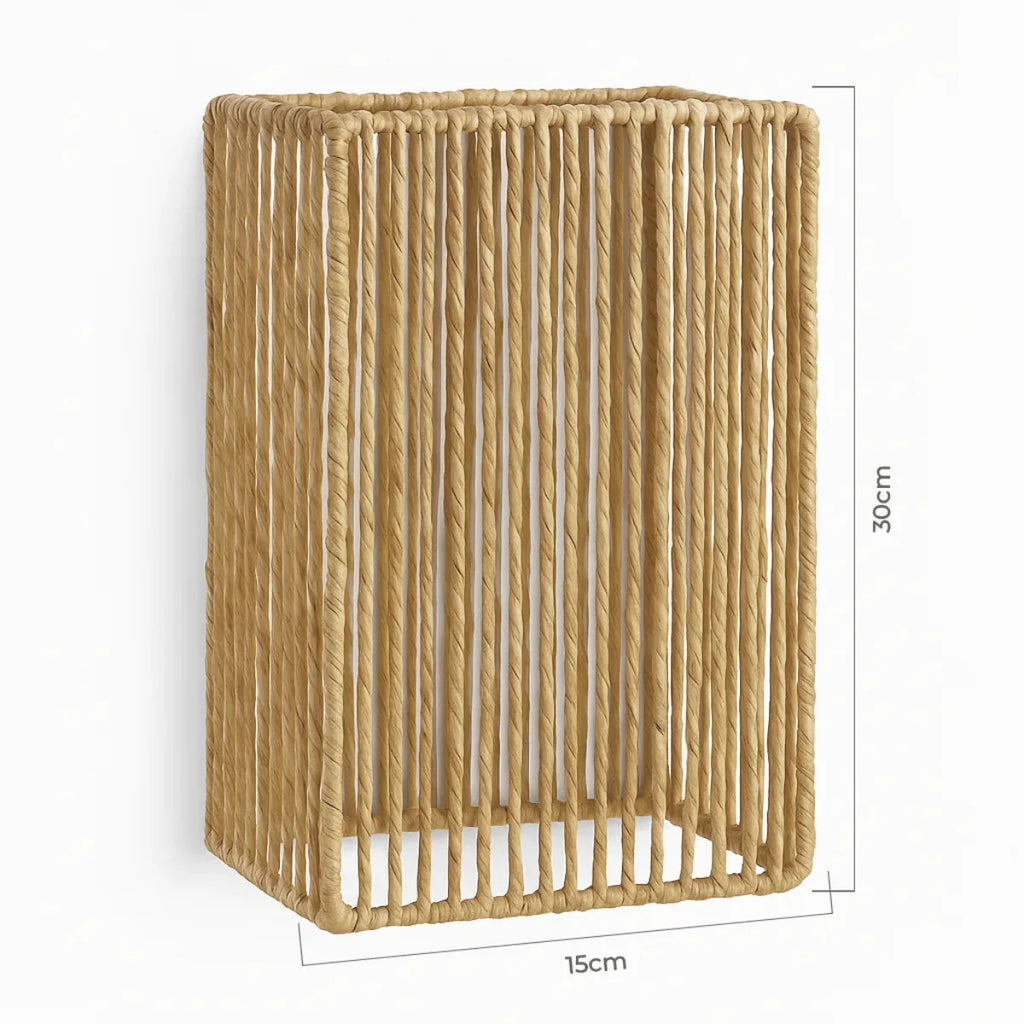 Com um design geométrico e acabamento em fibra natural, a Luminária Arandela de Palha Tanah combina leveza e estrutura de forma elegante e contemporânea. Suas linhas verticais filtram a luz criando um jogo sutil de sombras e texturas na parede, ideal para quem busca uma iluminação decorativa com alma artesanal. Perfeita para compor hall de entrada, corredores, quartos ou espaços de relaxamento com um toque natural e sofisticado.