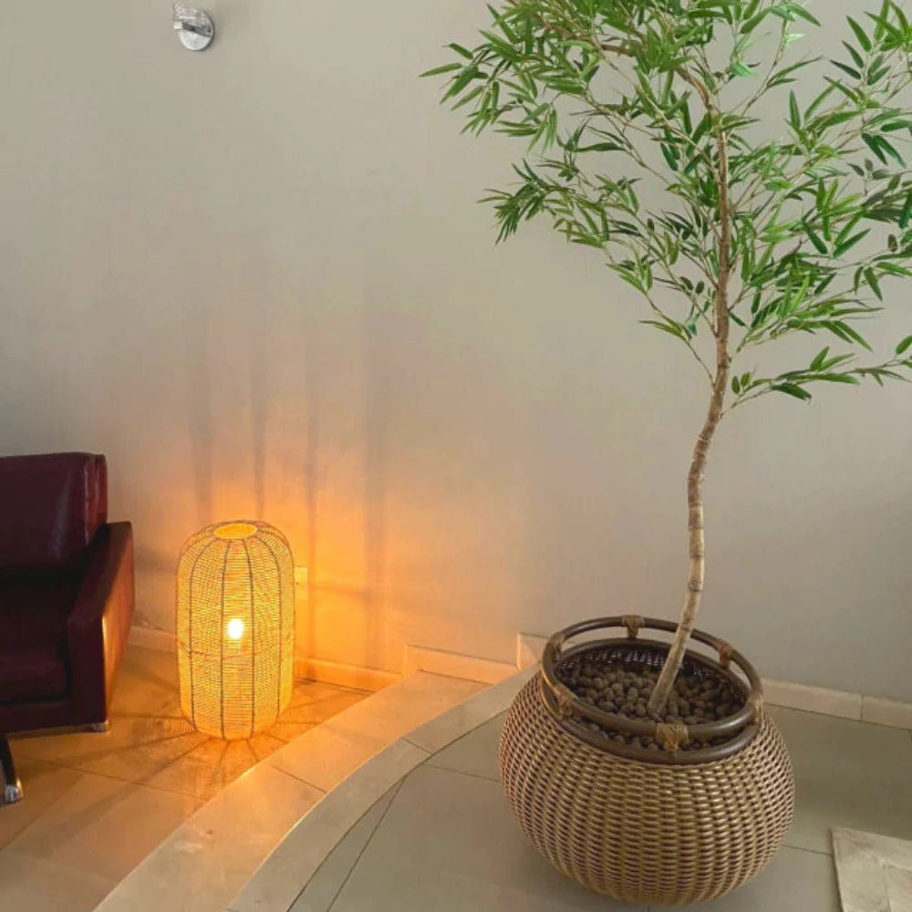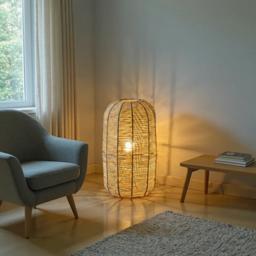 A Luminária de Chão de Palha Huayna com seu formato alongado e estrutura artesanal, transforma a luz em puro aconchego. Seu trançado delicado projeta sombras orgânicas nas paredes e no piso, criando um efeito acolhedor e envolvente. Ideal para salas de estar, quartos ou varandas, ela adiciona textura, movimento e uma sensação de calma à decoração. Com presença leve e ao mesmo tempo marcante, ela é ideal para criar cantinhos de relaxamento cheios de charme e autenticidade.