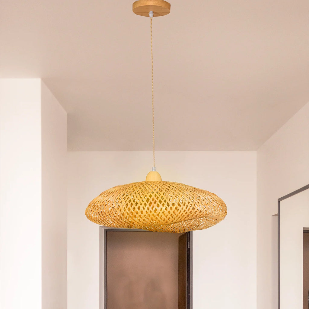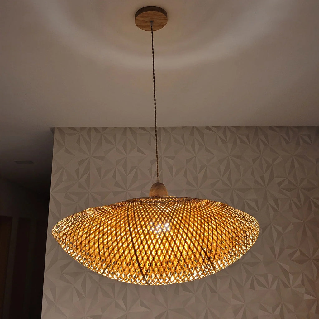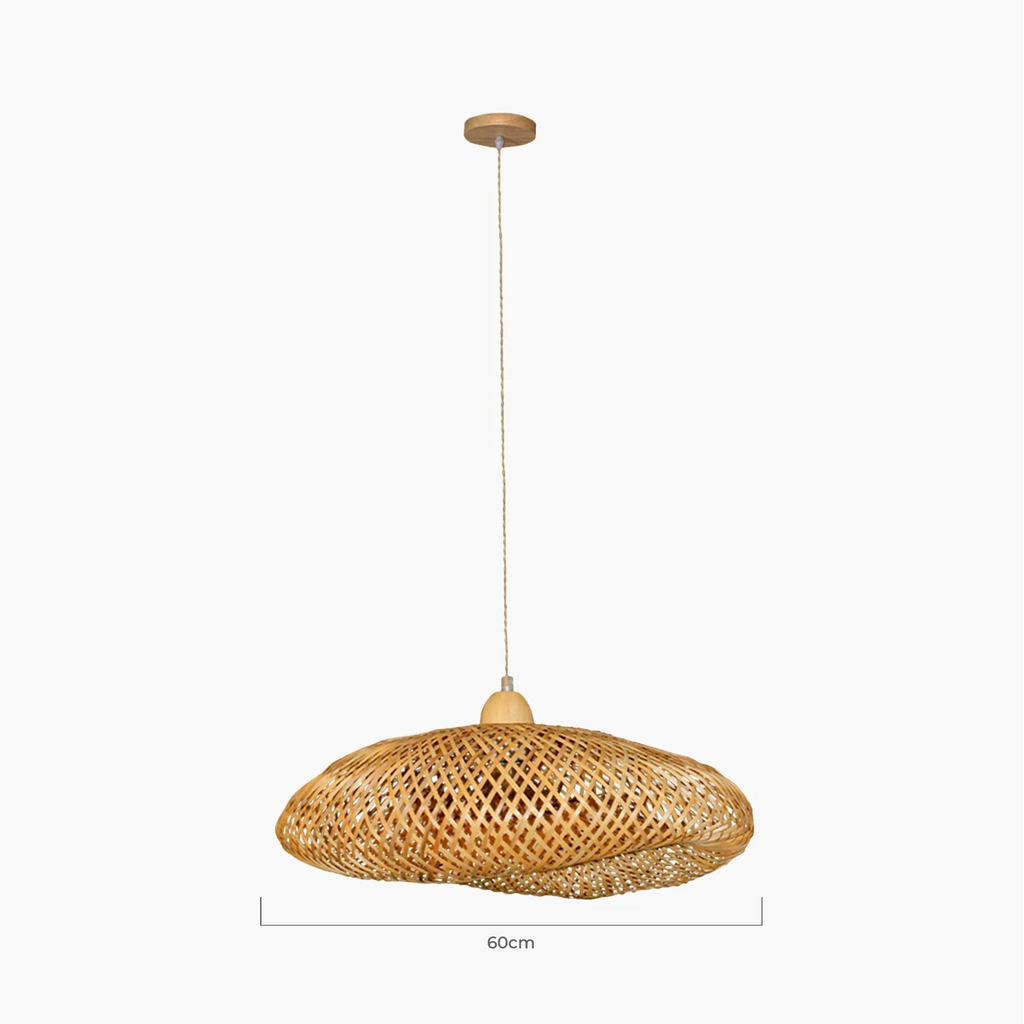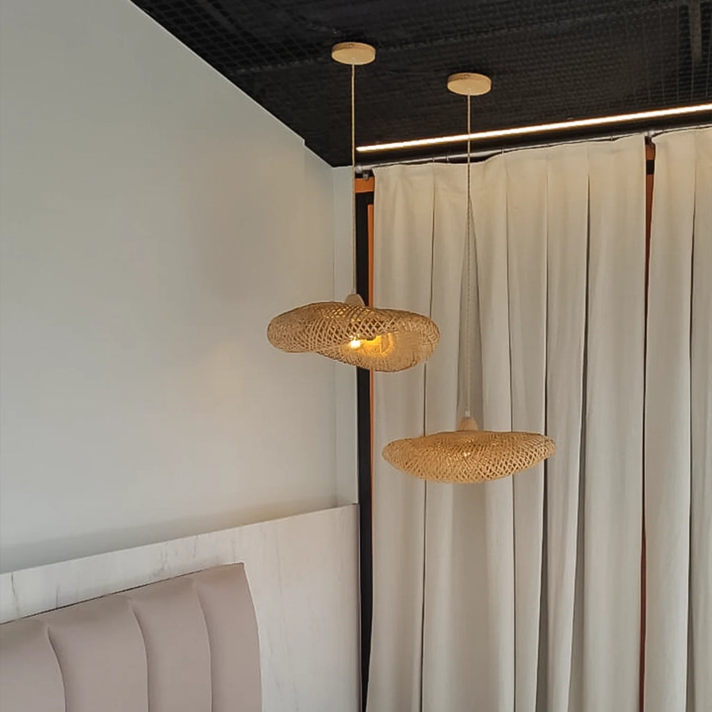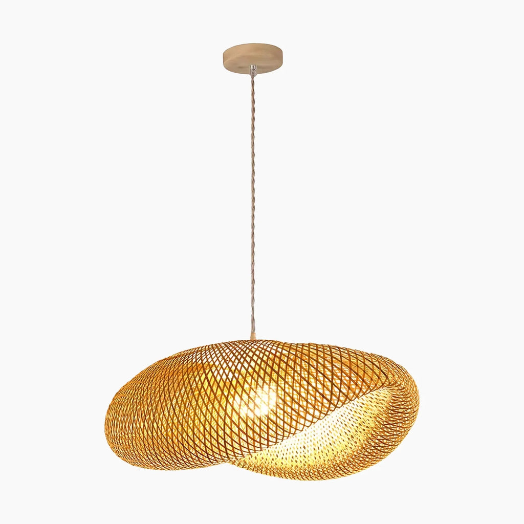 Traga a natureza para dentro de casa com esta luminária pendente de bambu natural, inspirada nas formas orgânicas e no artesanato contemporâneo. A estrutura vazada permite uma difusão suave da luz, criando padrões acolhedores que transformam o ambiente em um espaço relaxante e convidativo.