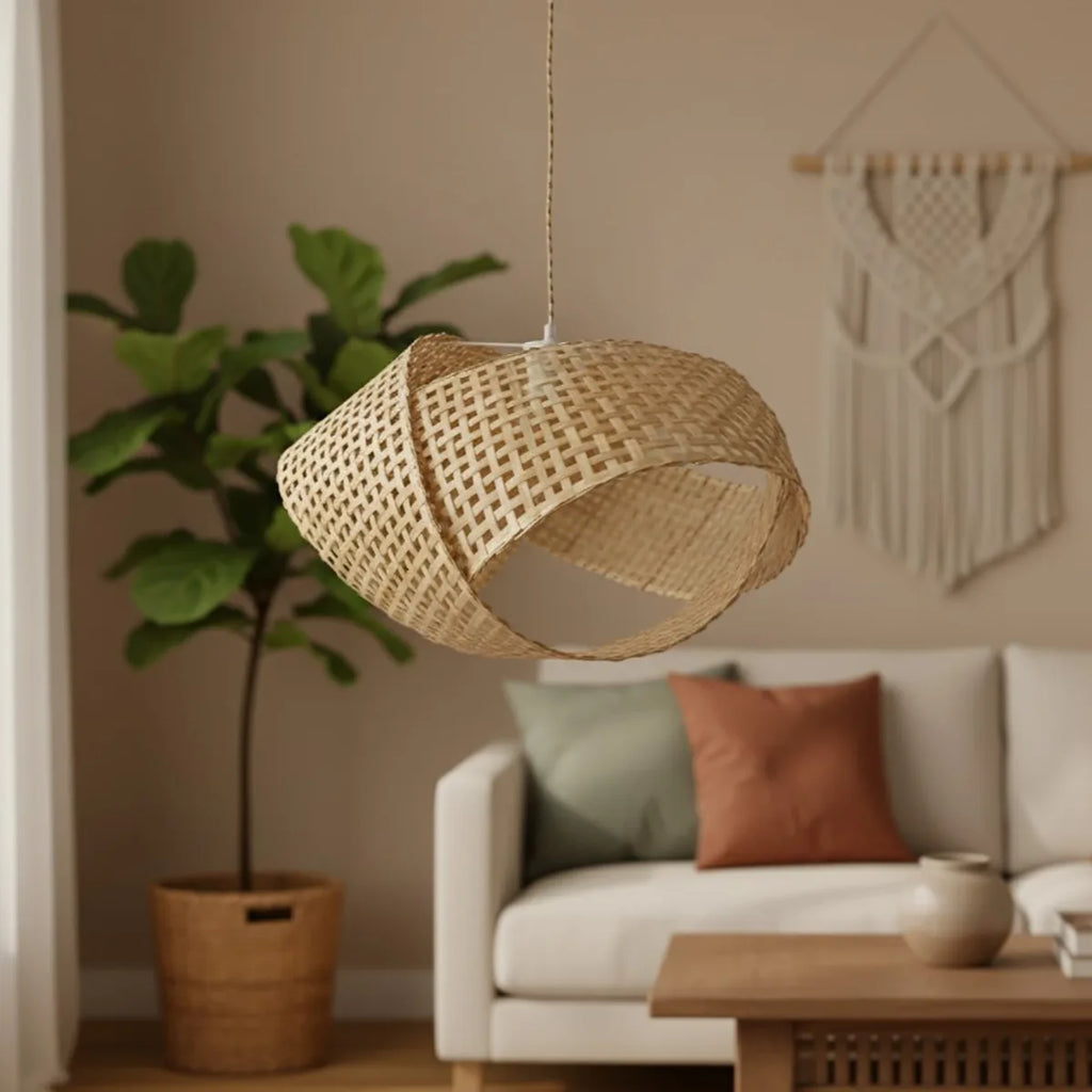 Com formas orgânicas e trama artesanal em palha natural, a Luminária Pendente Kairós é uma escultura de luz e tempo. Seu design torcido e assimétrico evoca movimento, leveza e personalidade.